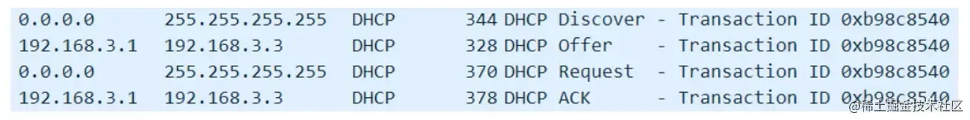 OFFER:提供租约- 服务器返回可以租用的IP地址,以及租用期限、子网掩码、网关、DNS等信息
