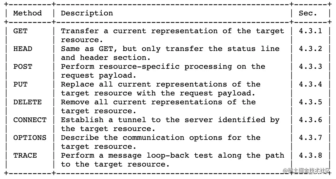 RFC_7231,section-4: Request methods:描述了8种请求方法。