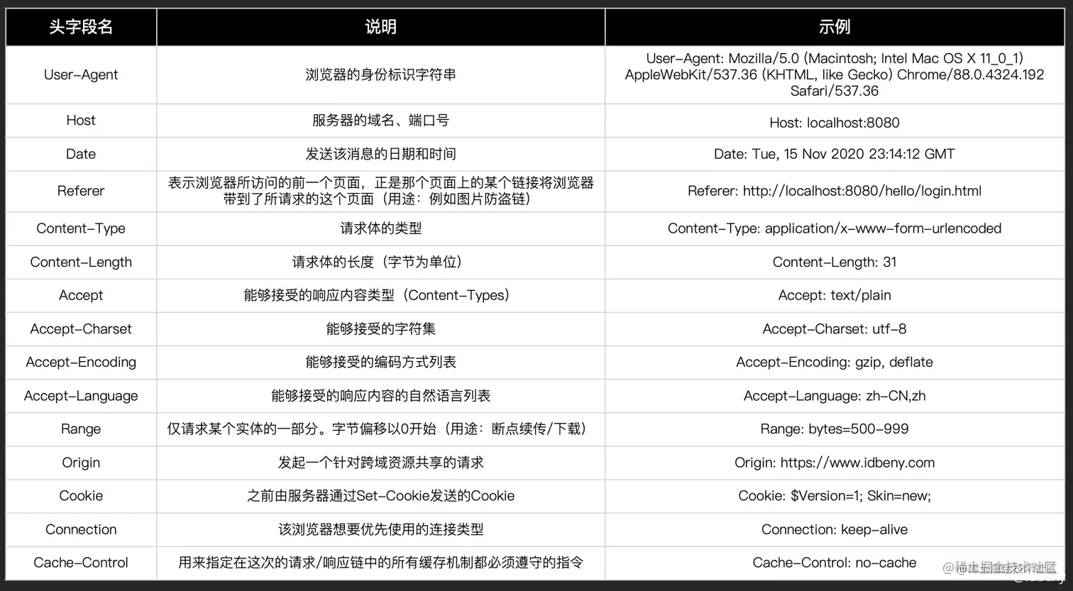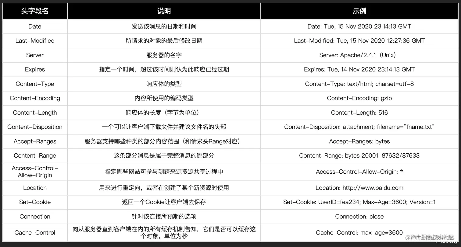 - 有关实体主体的更多信息,比如主体长度(Content-Length)或其MIME类型