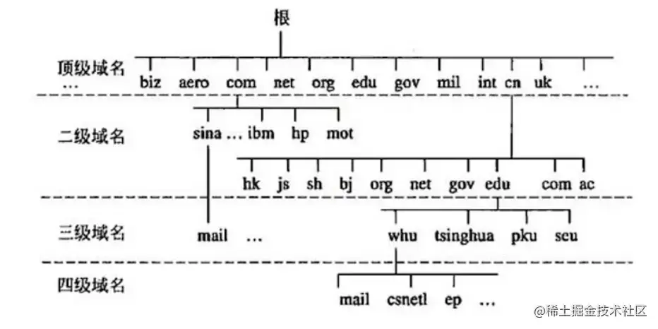 - 在国家及地区顶级域名下,它一般指注册类别的,例如com,edu,gov,net等