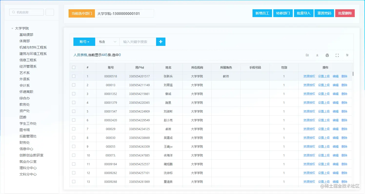 - 批量转移部门:日常人员管理中的常用功能,但很多后台系统都只能对单个人员修改部门,一个个的改起来太麻烦了。