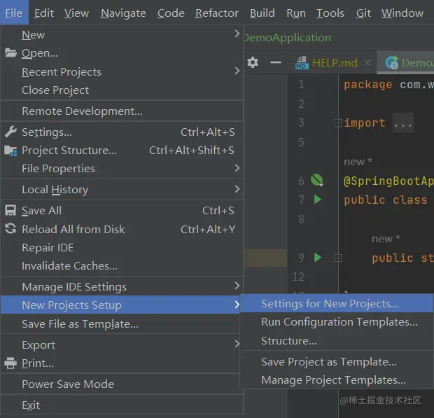 【File】——【New Projects Setup】——【Settings for New Projects】,如下