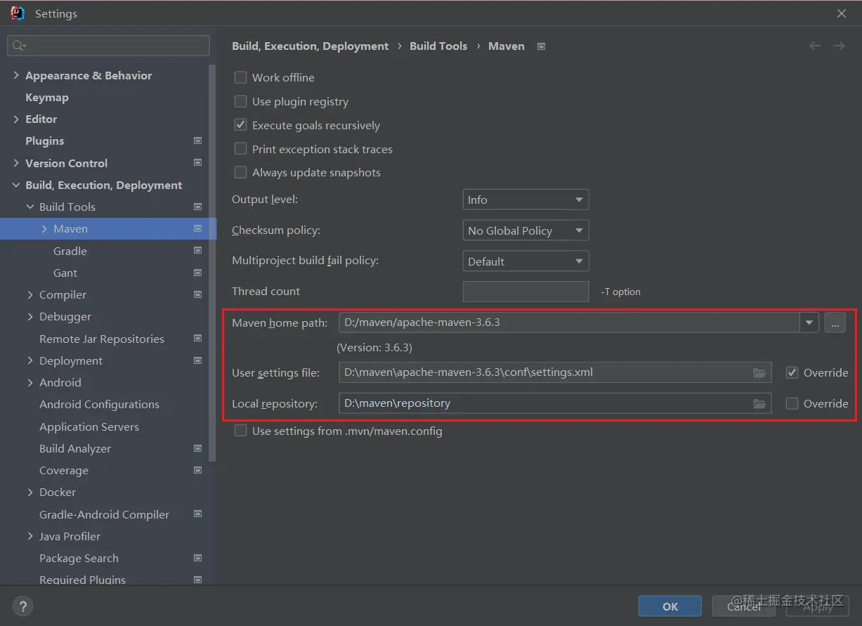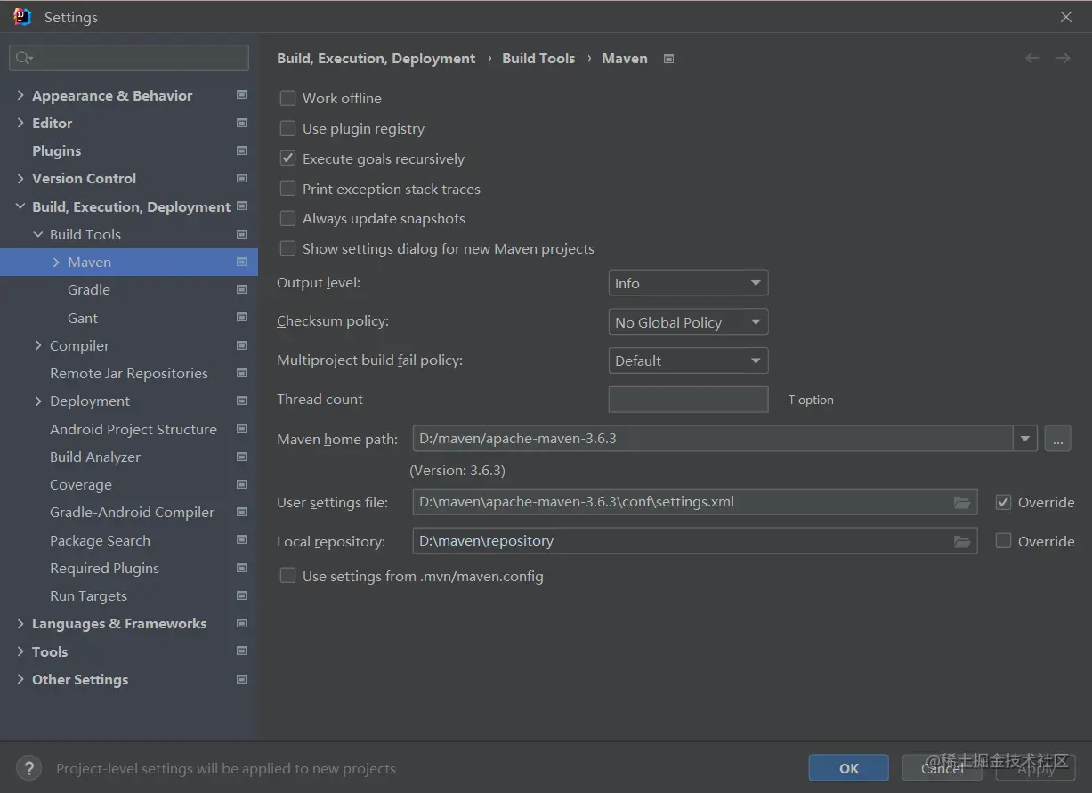 按照上述方式配置maven相关内容后【Apply】-【OK】即可