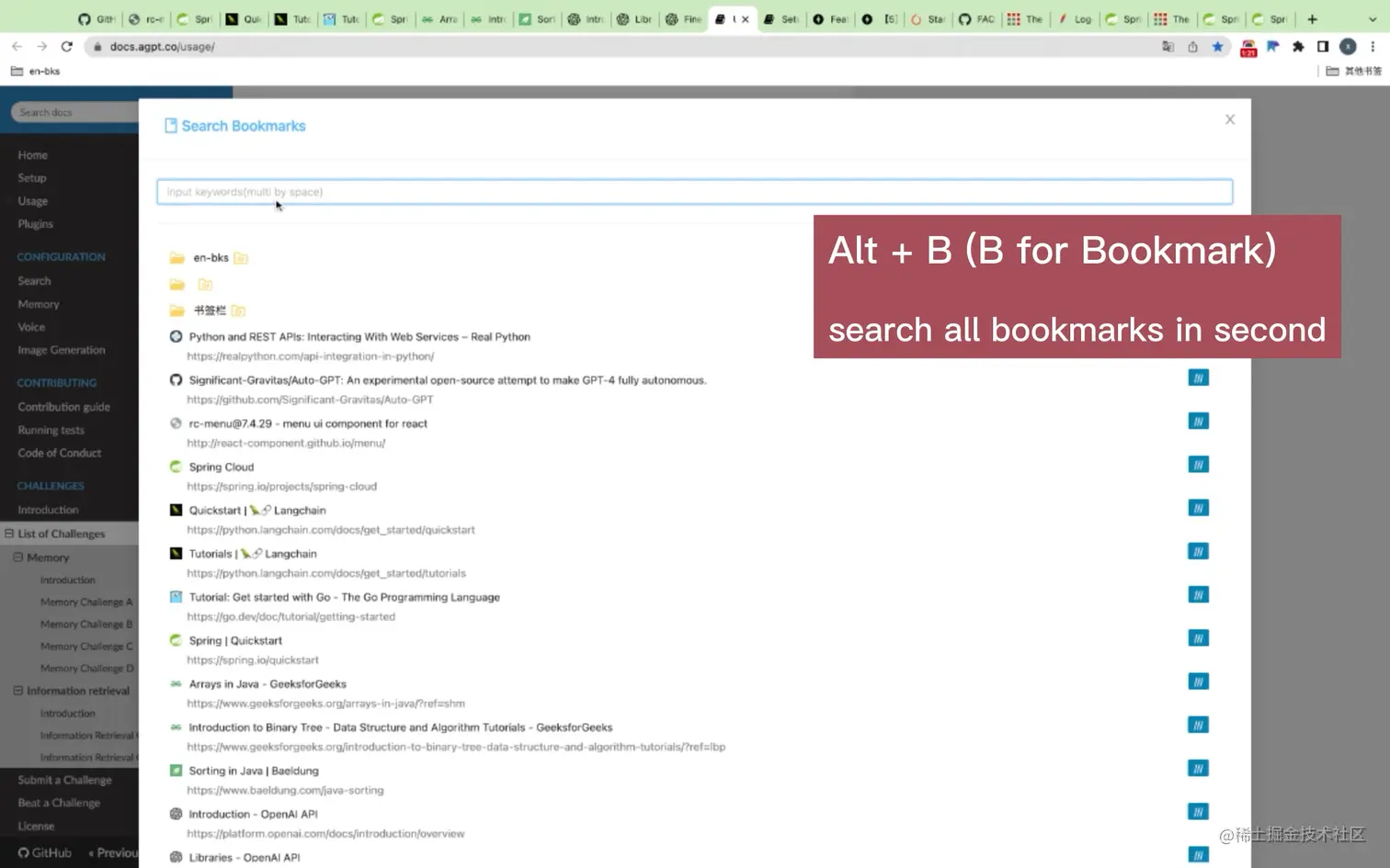 支持按标题、URL、标签、内容检索书签,支持多关键词搜索,支持搜索结果高亮,快速定位到搜索结果。