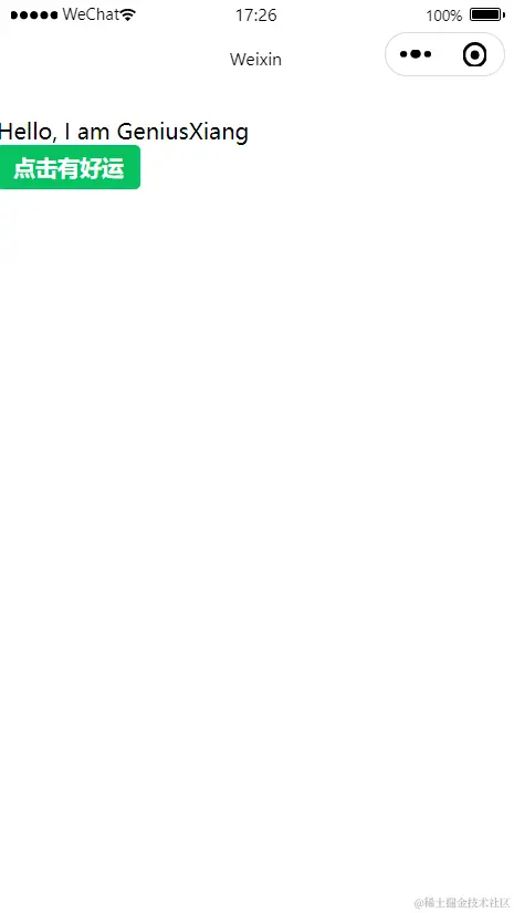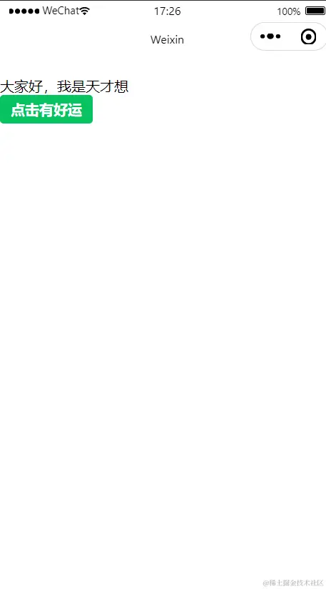 <button bind:tap="changeMessage" type="primary" size="mini">点击有好运</button>