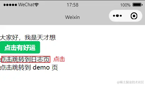 <navigator url="/pages/logs/logs">点击跳转到日志页</navigator>