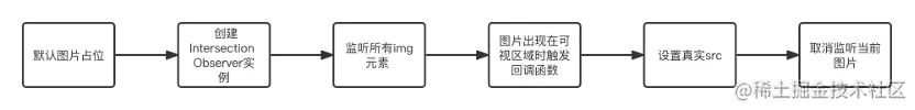有了Intersection Observer API之后,我们可以很容易实现图片的懒加载。此示例使用原生HTML+JavaScript实现,大致思路如下: