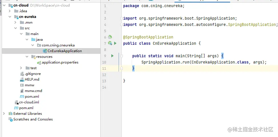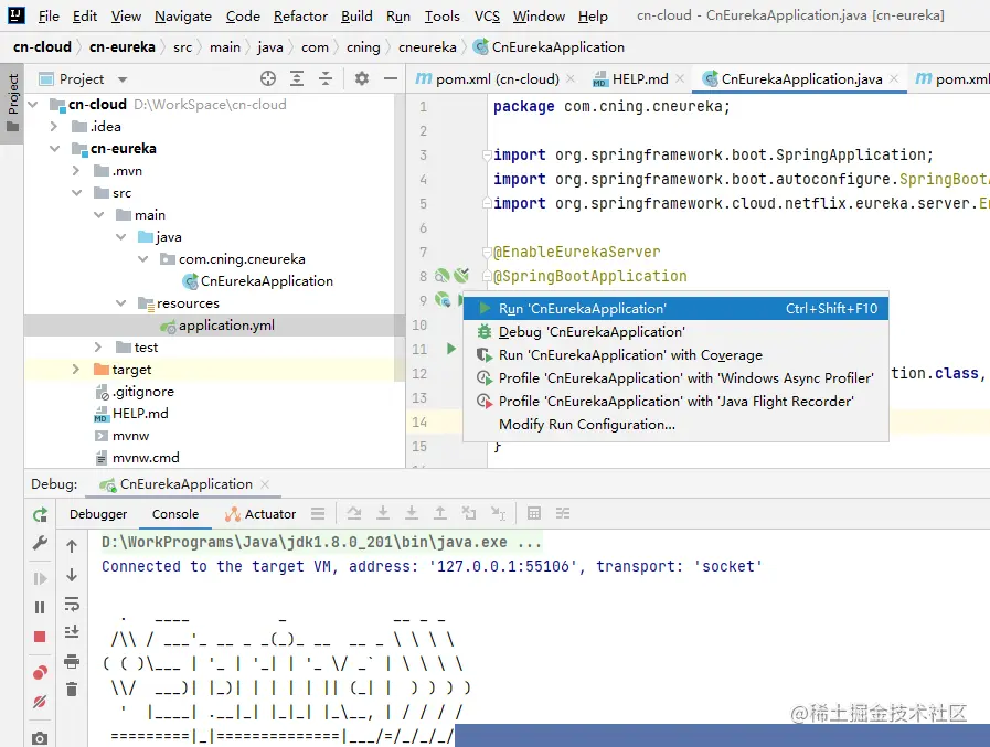 2.6 启动类添加@EurekaServer注解,最终代码如下