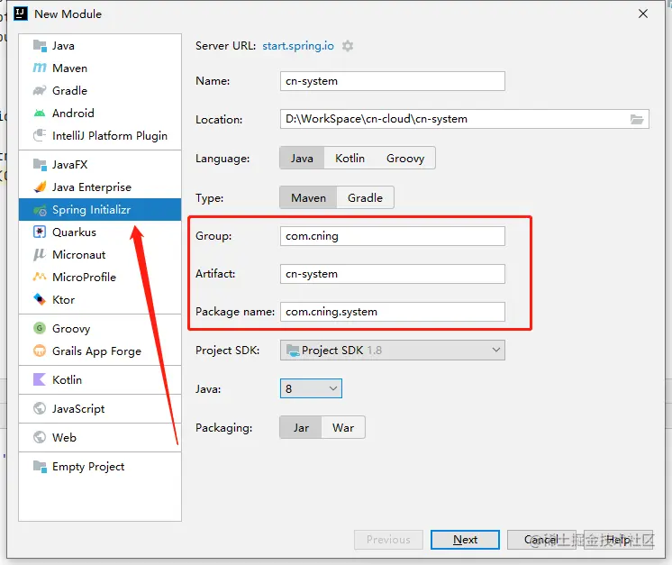2.2 填写Group和Artifact,选择Java Version,修改Package名称,点击Next