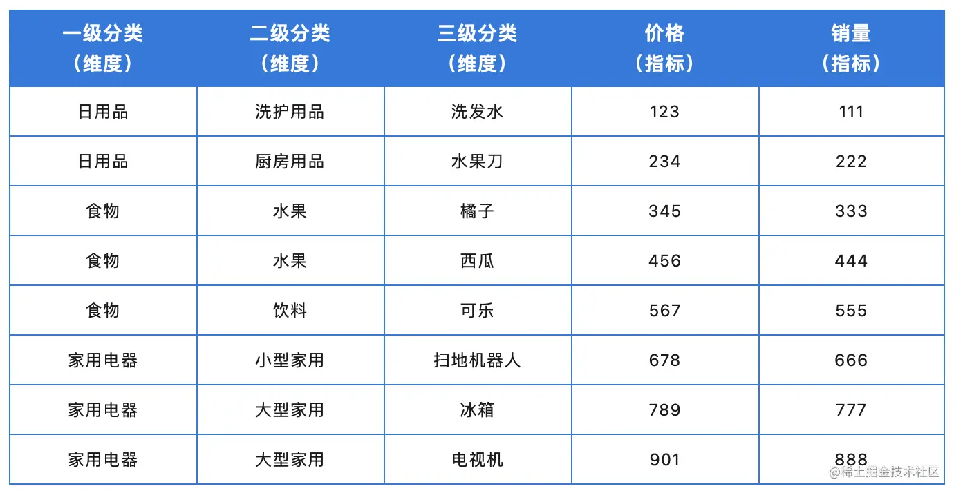 所有商品都被分类了,一个商品有且仅有一个分类,不存在一个商品同时归属于两个分类的原则。从一级分类的角度看销量:使用饼图、环形图、南丁格尔玫瑰图、矩形树图,可以看出不同类别商品的销量占整体销量的占比。占比之和=1。