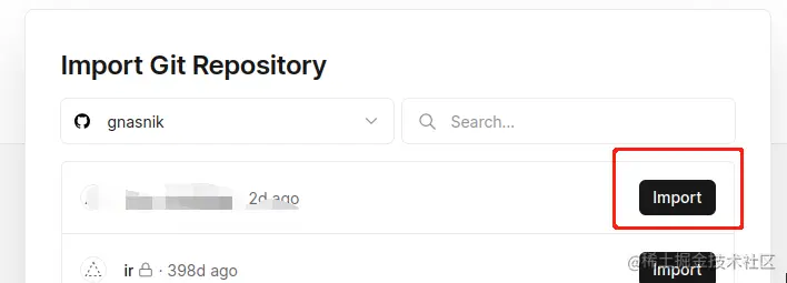 完成 fork 后,回到 vercel.com,点击"创建一个应用",选择您刚刚 fork 的应用,点击"import"按钮。