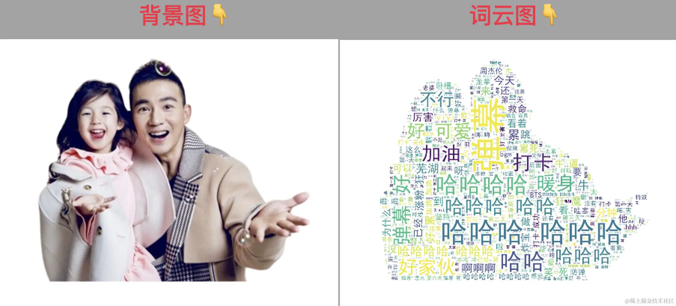 得到的词云图,和原始背景图对比一下: