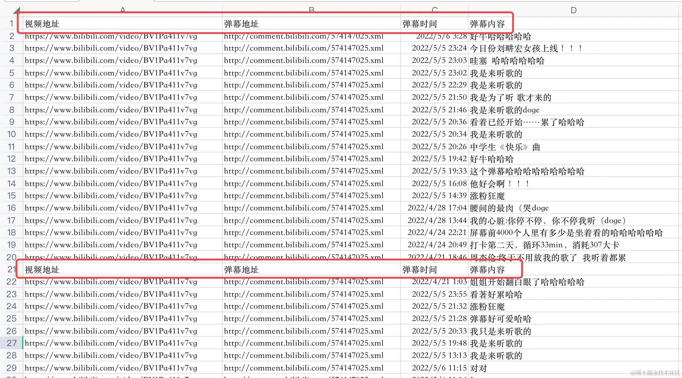 header = ['视频地址', '弹幕地址', '弹幕时间', '弹幕内容']