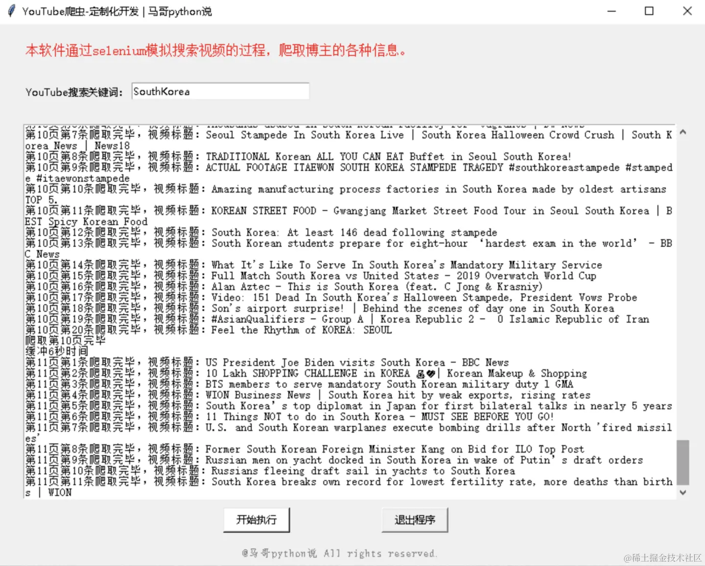 最近我用python开发了一个GUI桌面软件,目的是爬取相关YouTube博主的各种信息,字段包括: