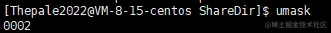 通过 umask 指令可以查看权限掩码。