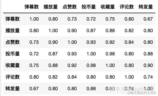 # 查看spearman相关性(得出结论:收藏量&投币量,相关性最大,0.98)