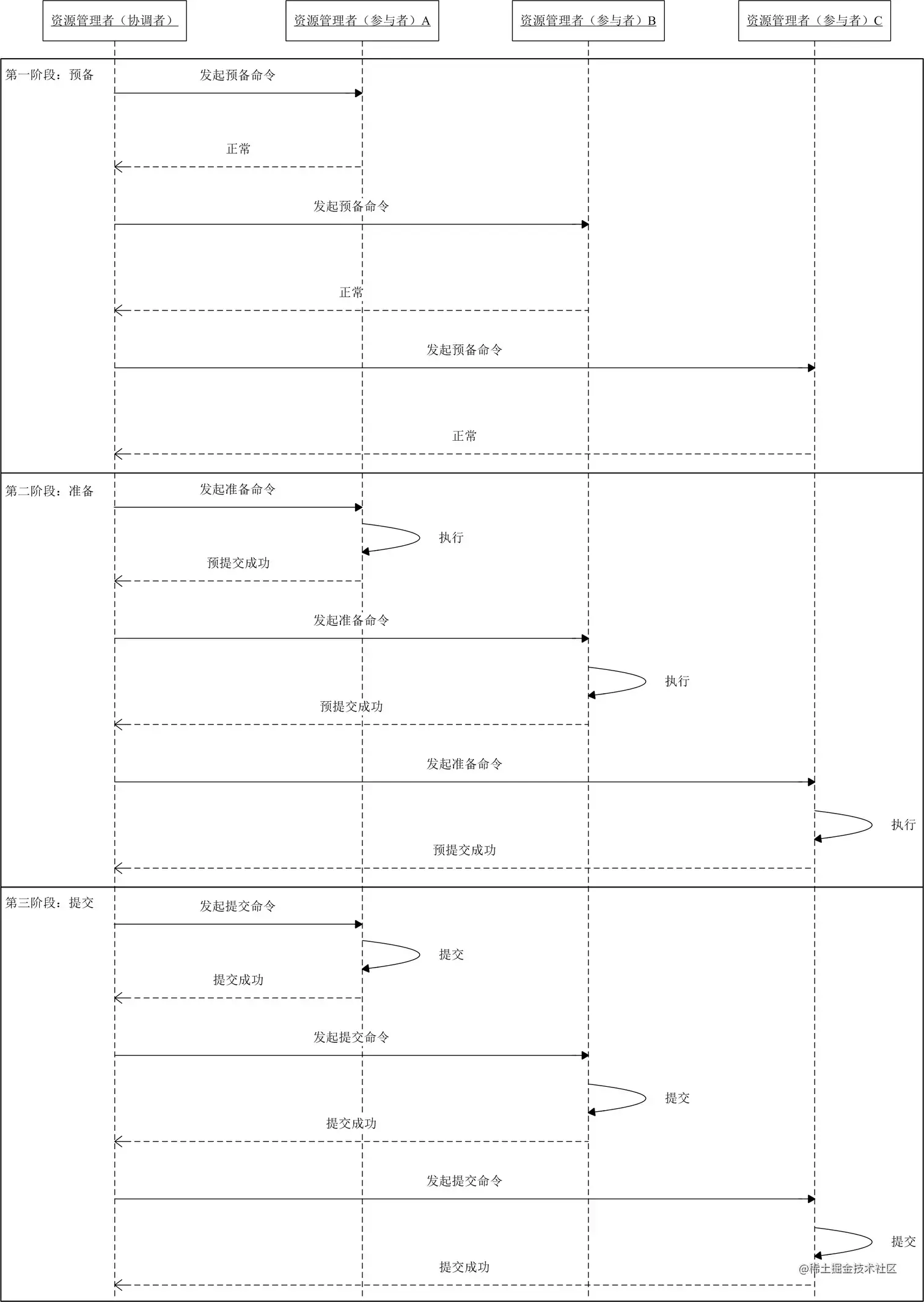 这里可能大家有点蒙,我再详细讲解一下三阶段提交的整体流程。