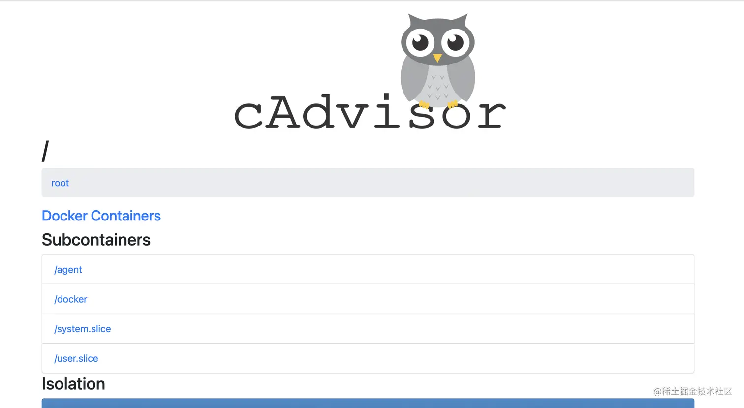 CAdvisor是Google开源的一款用于监控和展示容器运行状态的可视化工具。其可以搜集到机器上所有运行的容器信息,还提供查询界面和http接口,方便如Prometheus等监控系统进行数据的获取。