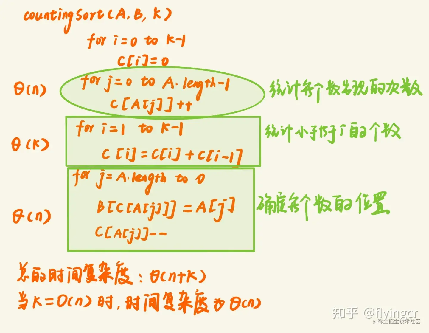 前提条件:待排序的数组的n个元素都在(0,k)区间内,k为某个正整数