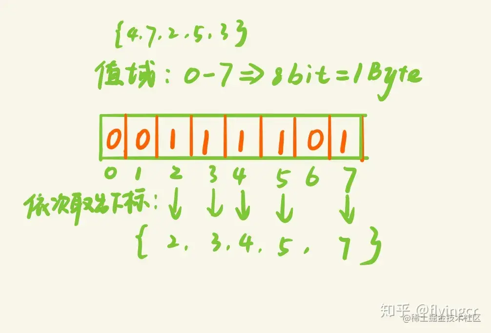 bitmap就是适用一个bit位代表一个数,所有bit位为1的下标就是排好序的数组(当然也可以用2个bit为代表一个数,或者多个)