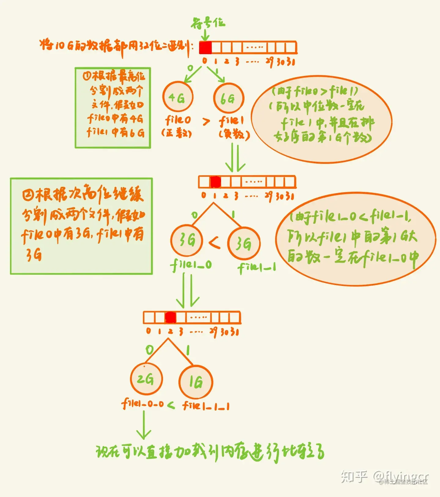 基于二进制位将10G数据映射到不同的文件中,利用快速排序的分割思想寻找中位数。