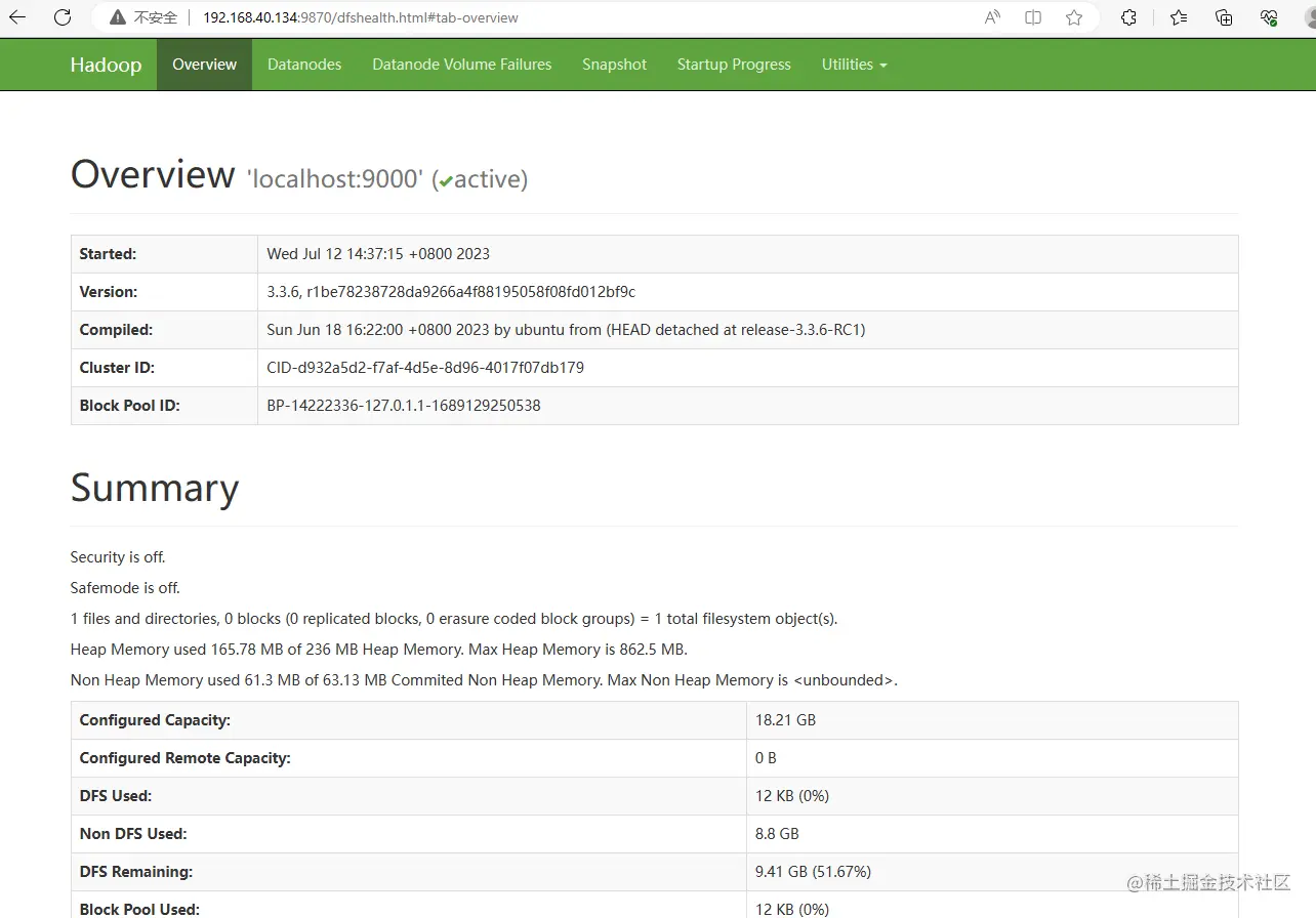 # 浏览器打开终端进行查看运行状态,注意防火墙端口是否打开,NameNode网址如下: