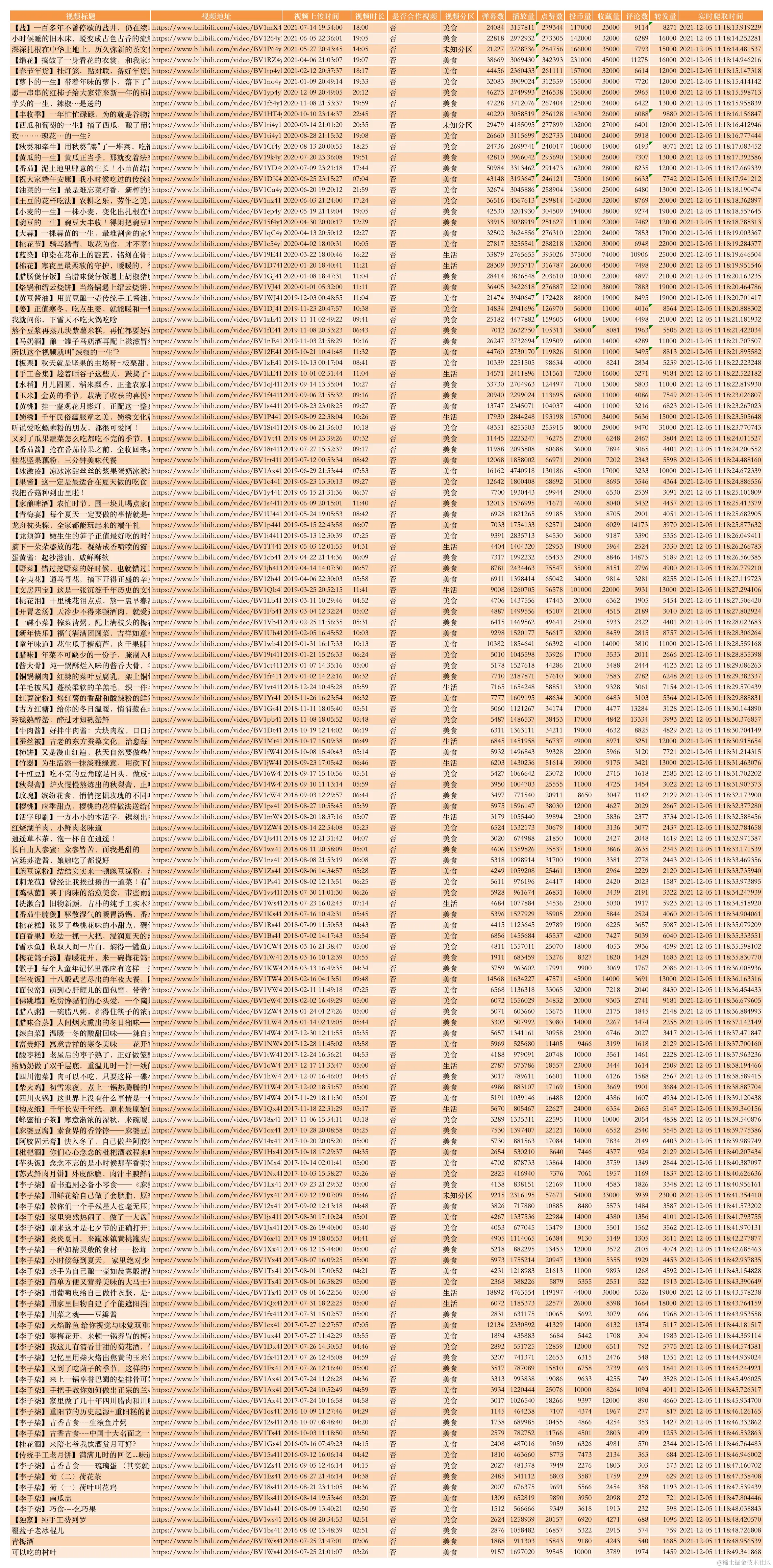 这次呢,用python爬虫爬了李子柒B站的所有视频数据。