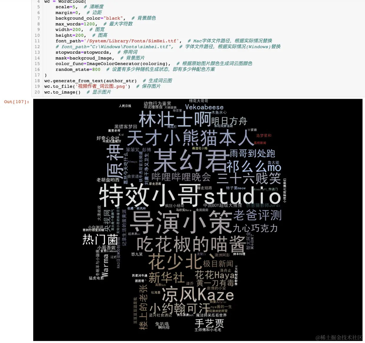 针对视频作者,画出词云图。