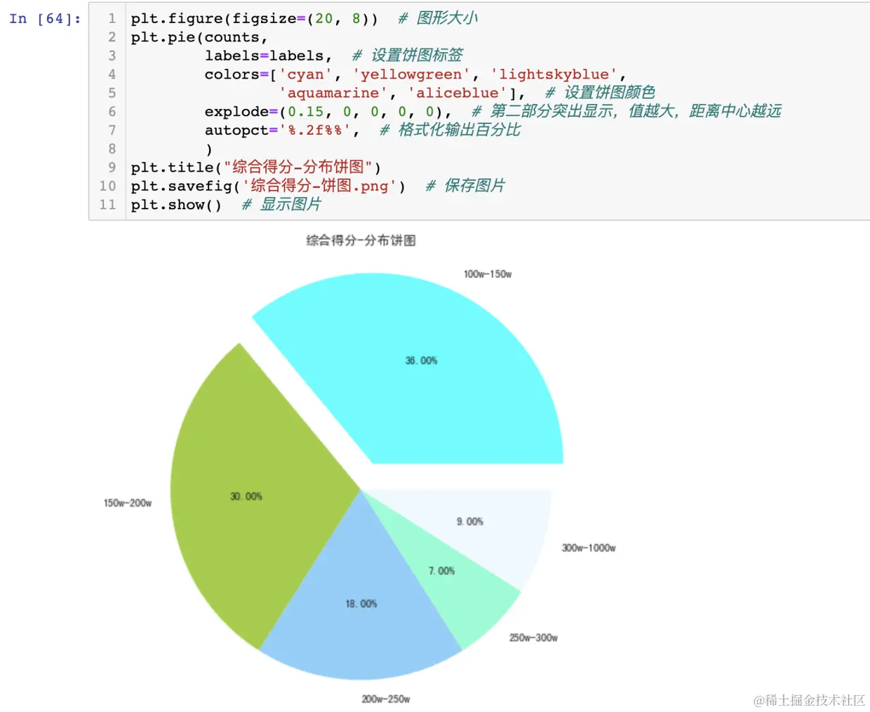 综合得分划分分布区间,绘制出分布饼图。