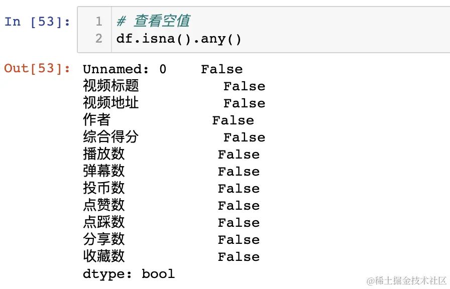 每列都是False,没有空值。