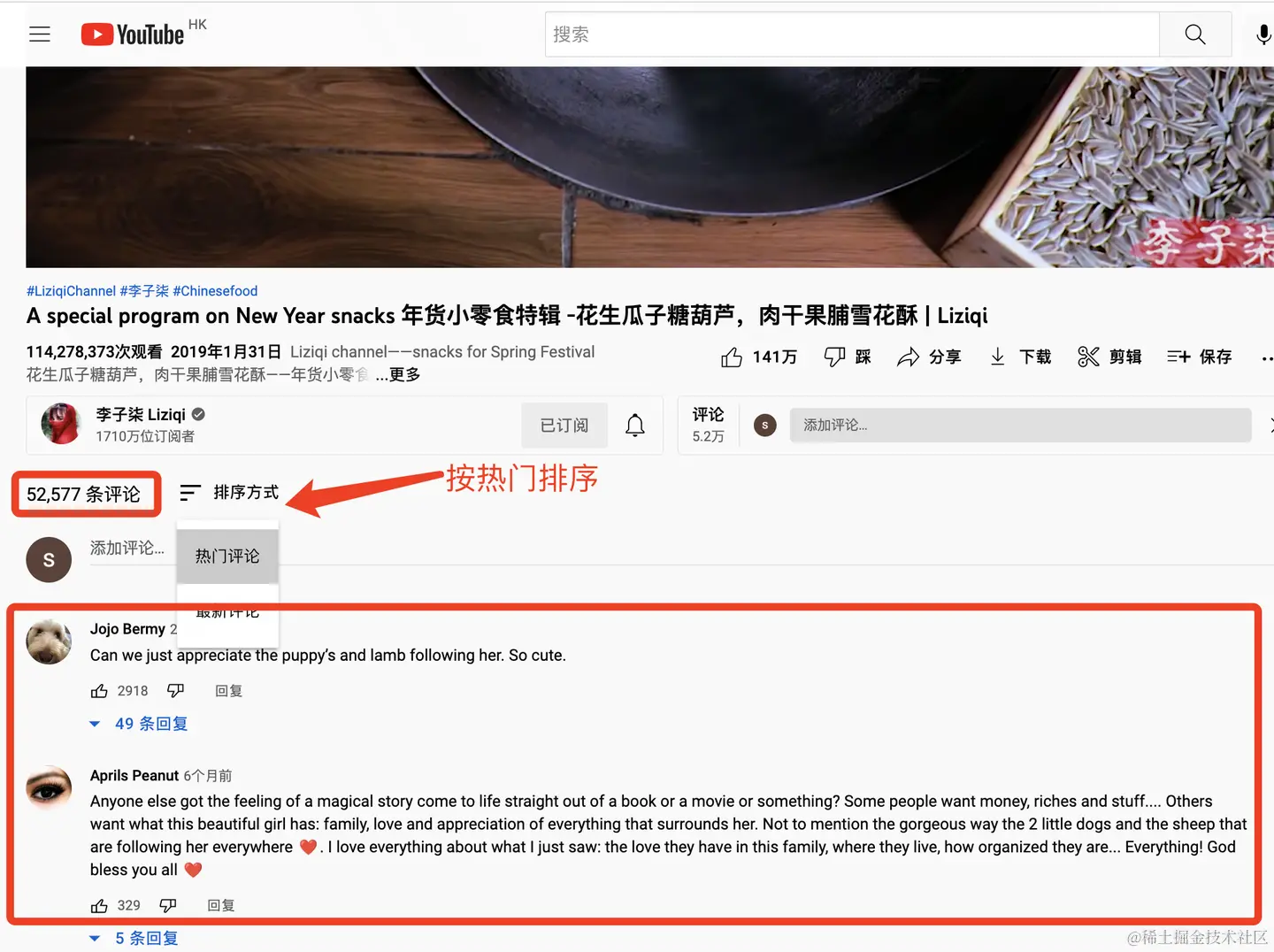 每个视频下方的TOP2000评论,同样按热门排序。比如TOP1视频的评论如下: