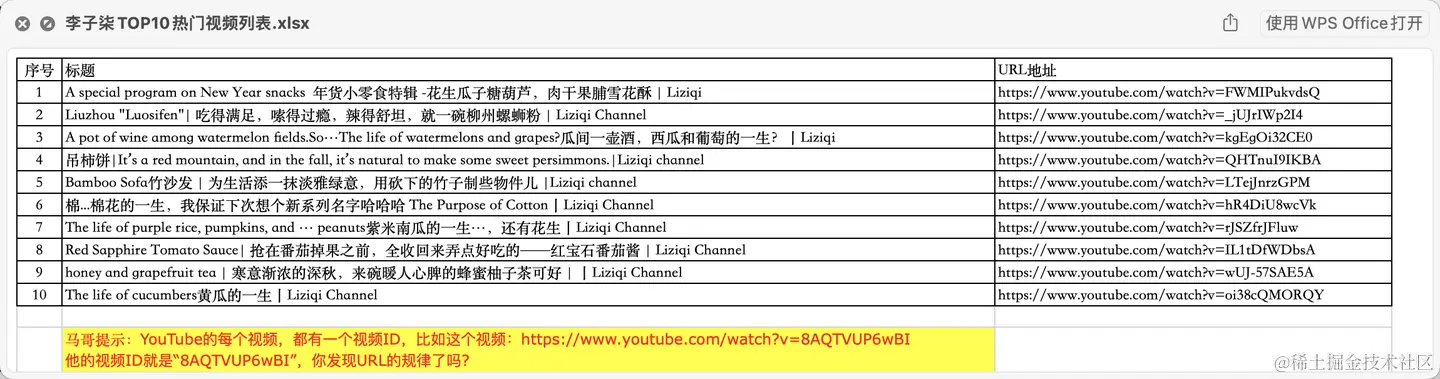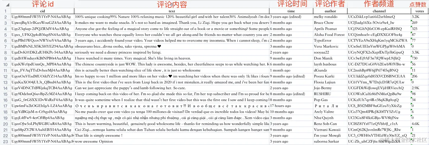 完整数据: 【爬虫数据分享】李子柒YouTube频道TOP10热门视频的TOP2000热门评论