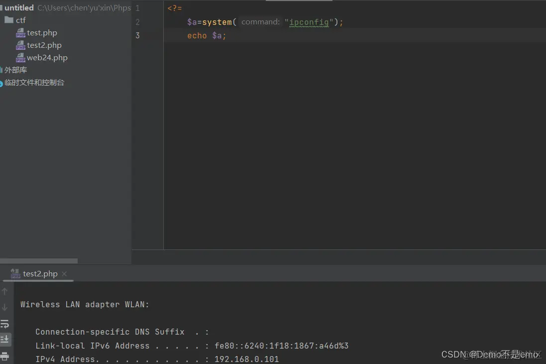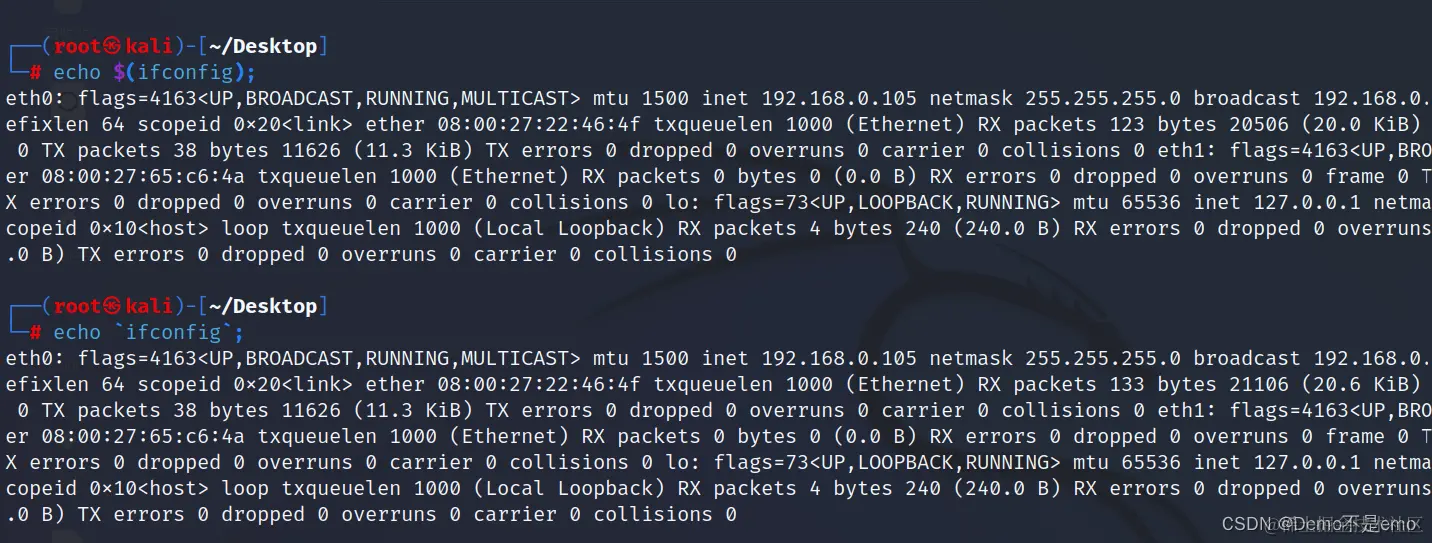 实例如下,可以看到同样的系统命令使用这两种方法都能执行,下面这两个命令的效果就相同