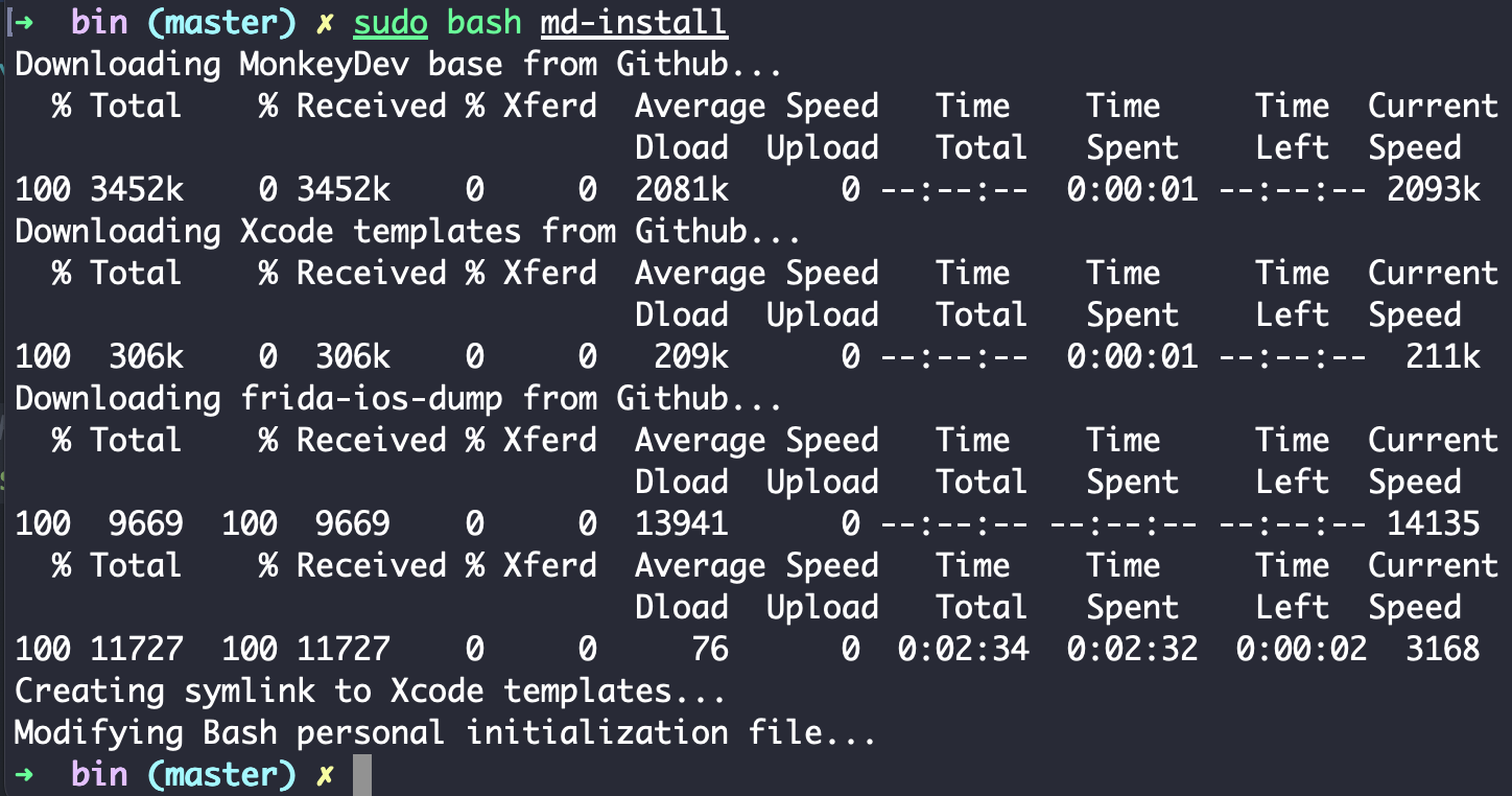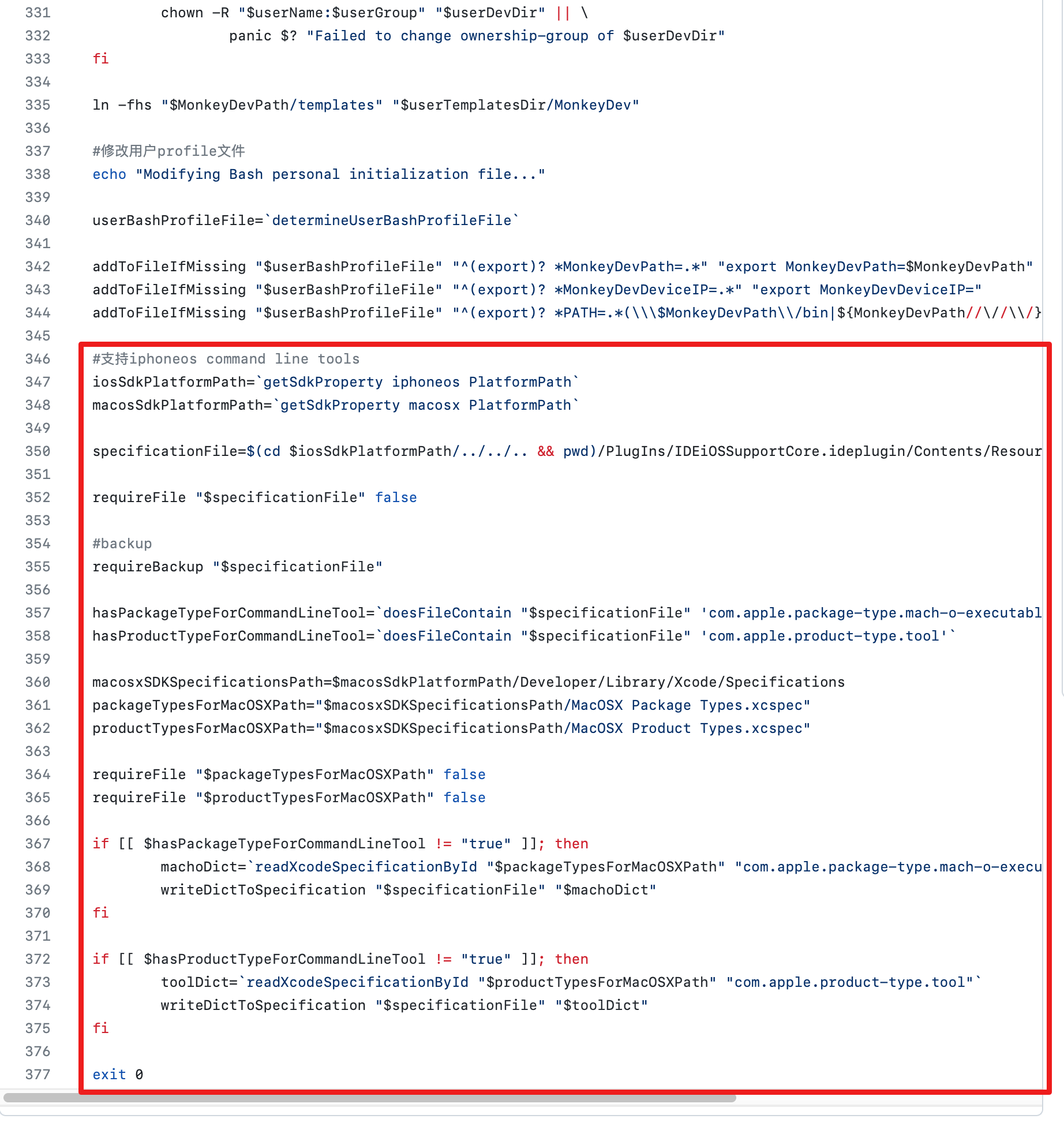 - 打开 MonkeyDev/bin/md-install 文件中,删除如下