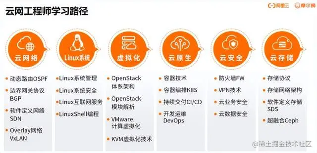 当然,如果不是相关的专业毕业的同学想要入行云计算其实也不难,可以从0开始学习,如果你够自律,学习能力强,网上有非常多的免费课程可以自学,如果觉得自己不够自律也没关系,可以报名云计算相关的培训课程,摩尔狮有专为0基础以及想要转行的同学制定的云网工程师课程。