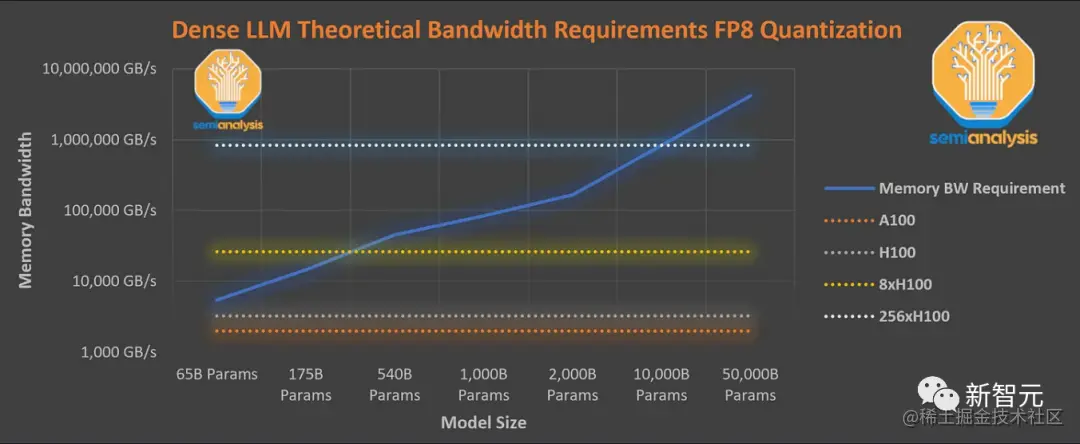 因此,大多数芯片的比率(H100 SXM仅有3TB/s内存带宽,但FP8有2,000 TFLOP/s)在批大小为1的推理中完全是不平衡的。