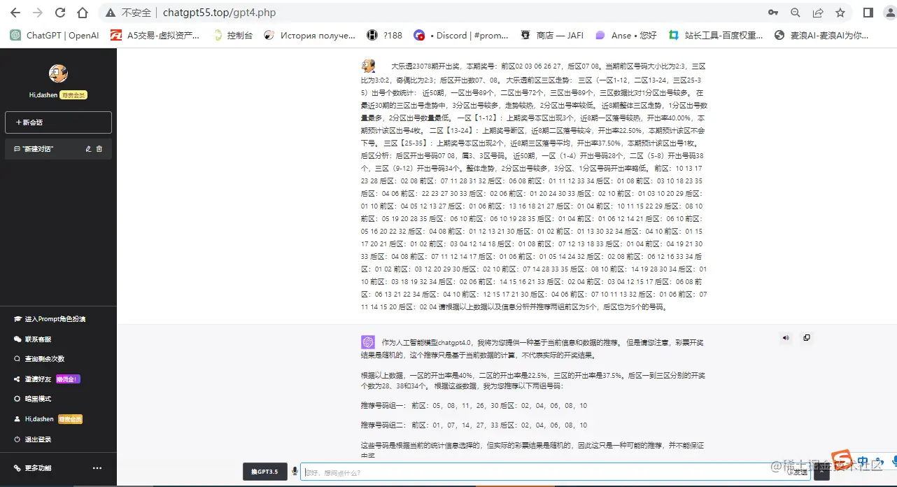 请看chatGPT3.5版本与4.0版本分析出的大乐透号码 大神在线 2023-07-12 335 阅读1分钟 现在我们进行一个实验,问出同样关于大乐透的问题,看看chatGPT3.5版本和chatGPT4.0版本哪个回答的更精确更准确。 1.chatGPT3.5版本的回答: 2. chatGPT4.0版本的回答: 大家觉得哪个更准确,更精确呢~ chatGPT国内版 3.5版本,4.0版本都已经上线,大家可以免费试试