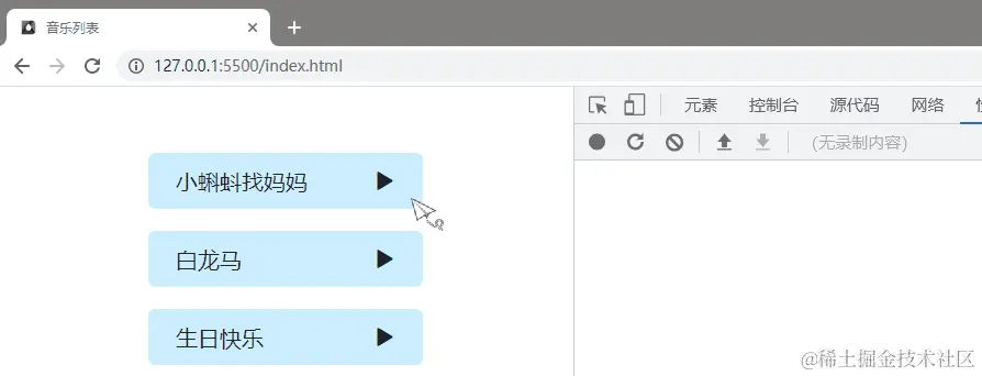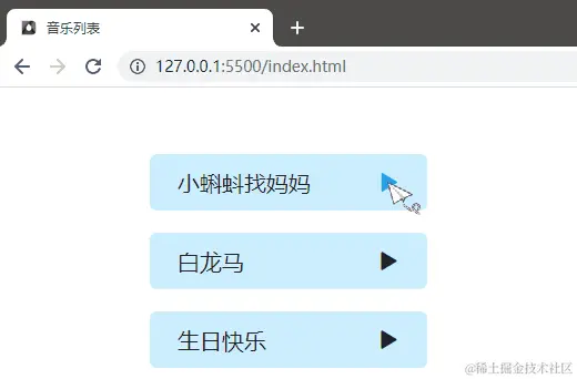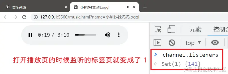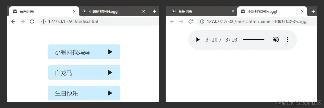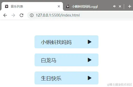 我们看下图这个效果,在首次点击播放音乐时,打开了一个新的标签页并在新的标签页中播放音乐。
