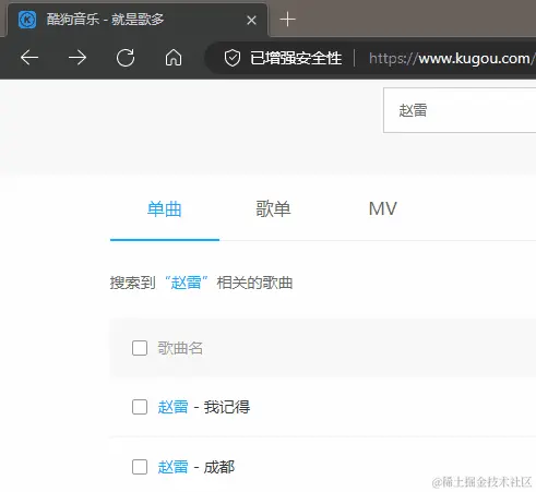 列表页呢,我们通过点击播放按钮,利用 window.open 去打开一个新的标签页,并将音乐的名字通过 url 传递过去。