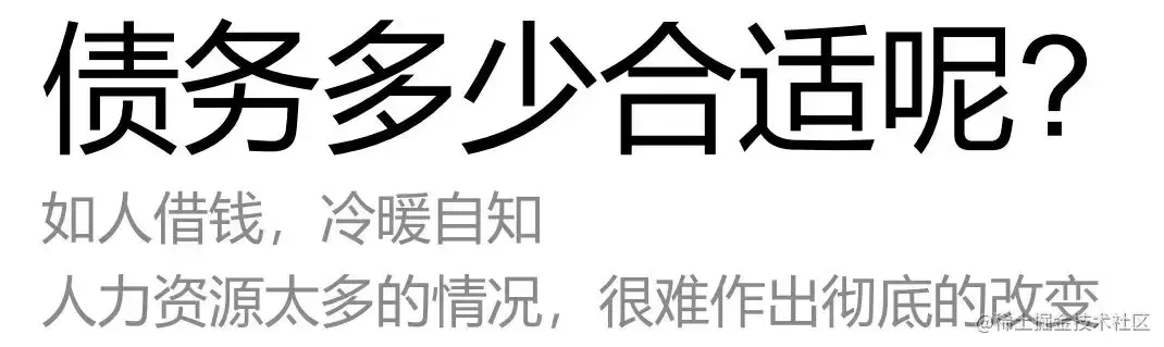 如果把视野再拔高一点,其实不单单是技术有债务的问题,业务发展带来各种各样的债务,例如团队管理、项目管理、知识管理等,其实都可能形成债务。