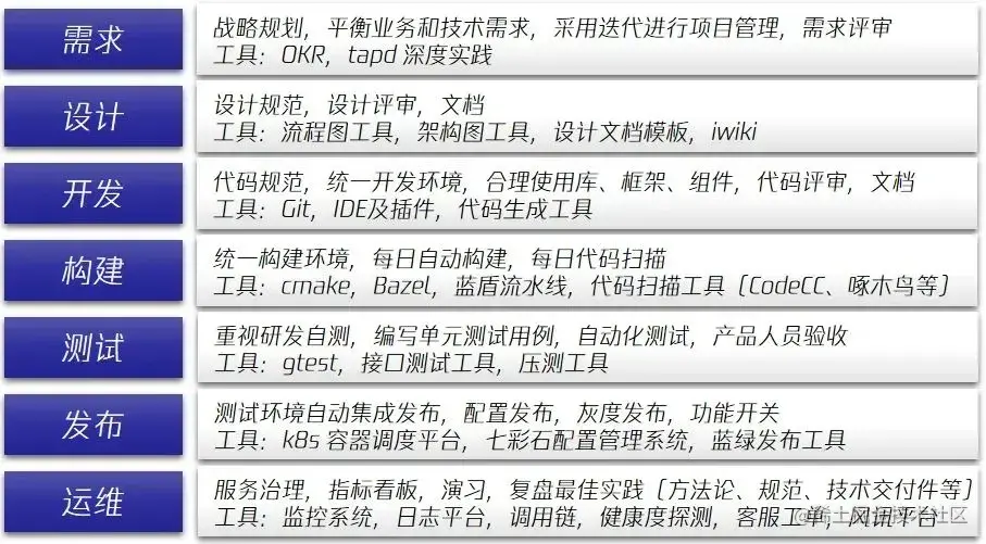 持续沉淀最佳实践,形成标准、规范,并最好沉淀为模板、框架、库、组件、工具等。