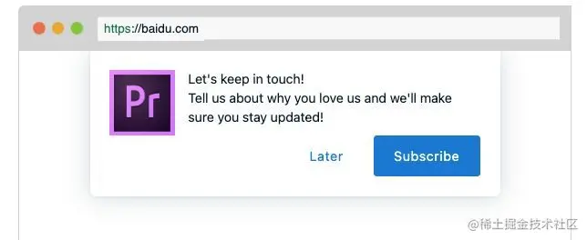 这些提示非常有益,因为它们增加了用户保持订阅您的消息的可能性,并且受到浏览器的高度推荐。授权提示有三个作用: