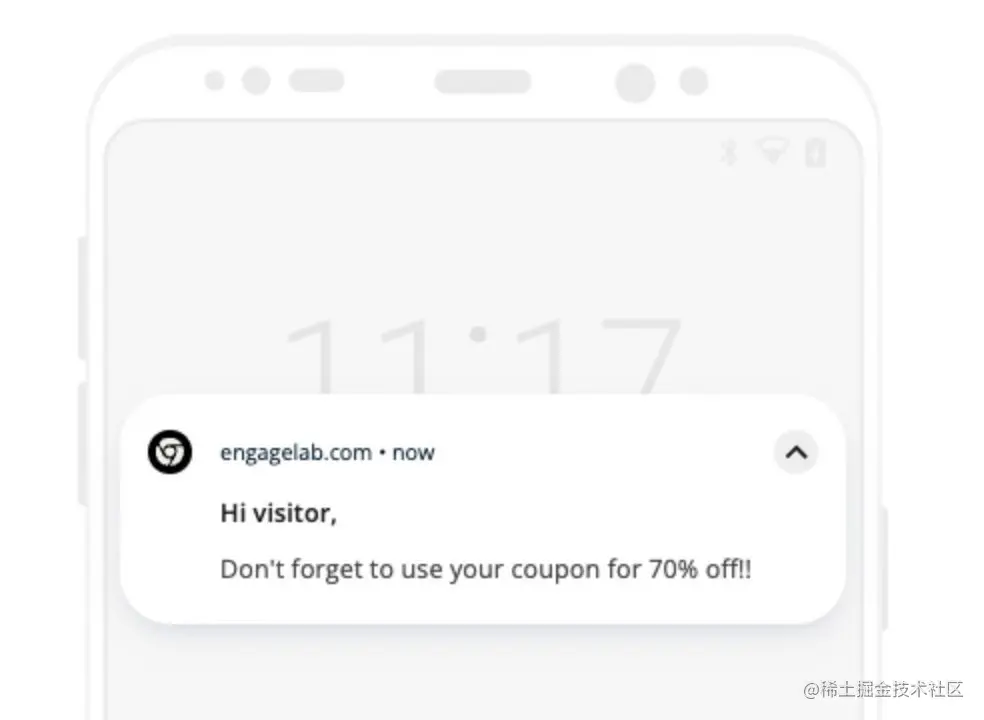 将未知访客转化为首次购买者是一个重要挑战,因为您的网站访问者中有近90%是匿名的。您已经花费了大量的时间和资源来吸引这些访问者,如果他们不完成任何操作或交易,这可能对您的业务构成致命威胁。然而,您无法通过付费的重新定位广告或电子邮件等方式与这些用户直接联系。在这种情况下,Web推送通知可以发挥重要作用,帮助您吸引和转化这些匿名访客成为首次购买者并推动业务收入。比如您可以您可以仅给这部分访客发送web推送通知,提供一些可用于购买物品的优惠券,促使访客完成付费转化。