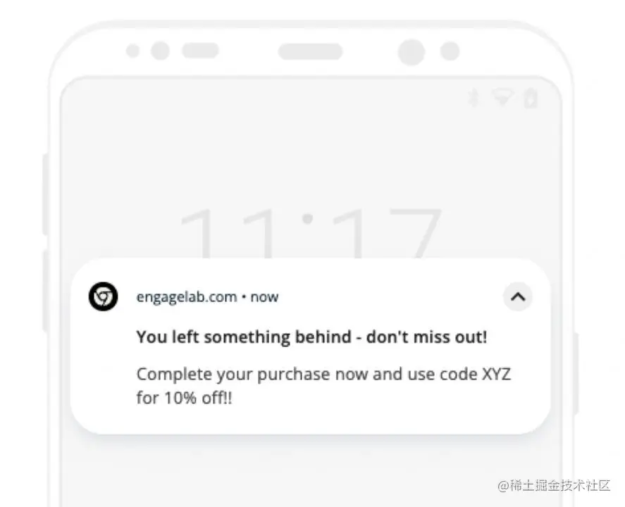 在线购物车的放弃率平均达到67%,对于企业来说,这听起来并不健康。产生这种现象有多种原因,比较常见的有:"客户意外离开了他们的计算机"。虽然您无法阻止用户临时离开,但在他们回到计算机时,您需要找到一种方法与他们重新联系起来。使用Web推送通知,即使他们已经关闭了网站,您也可以针对这些放弃购物车的用户,促使他们回来并完成购买!当购物车中的商品长时间未支付或订单被放弃时,您可以使用EngageLab WebPush提供的标签别名API为这部分用户打上对应标签,并使用创建推送API向这部分标签用户发送优惠券或折扣券,以提高转化率。