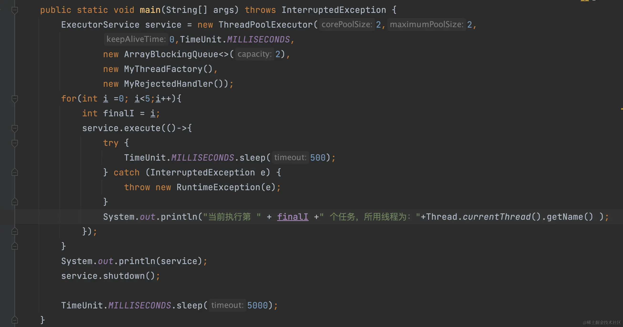 - maximumPoolSize: 池中允许的最大线程数