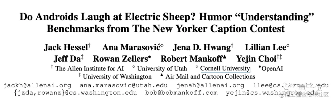 第一篇是关于AI是否能理解幽默的研究。由艾伦人工智能研究所、OpenAI、康奈尔大学等带来。