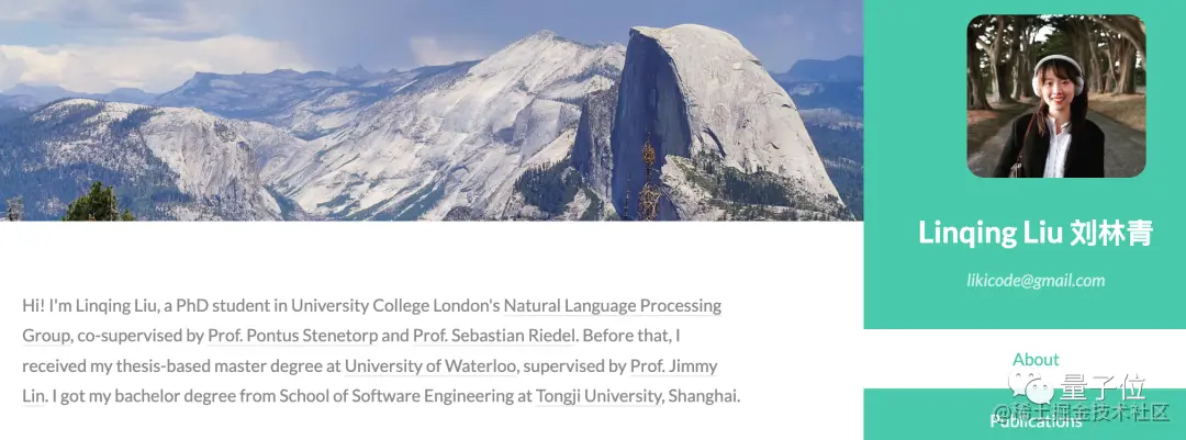 Linqing Liu来自伦敦大学学院,是NLP组的博士生。本科毕业于同济大学、硕士毕业于滑铁卢大学。
