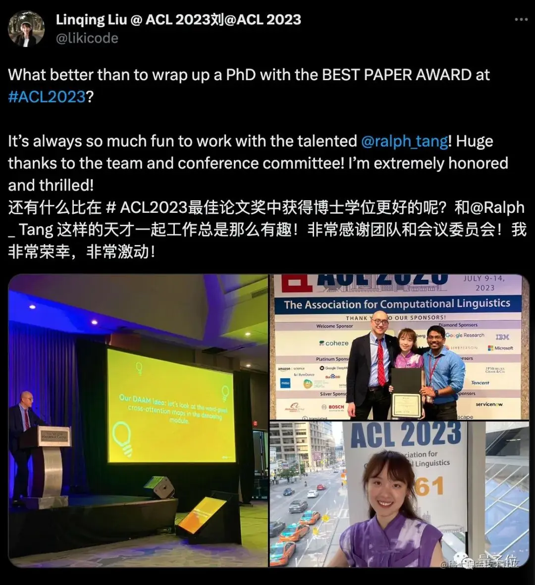 今年ACL的颁奖选在了多伦多,有很多学者在晒自己的获奖照片,感觉现场格外热闹。