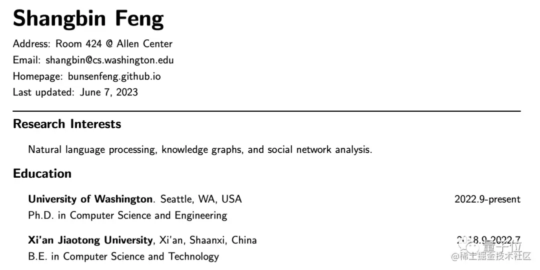 一作同样是华人面孔。Shangbin Feng目前在华盛顿大学读博,本科毕业于西安交通大学,按照入学年份推算可能是一位00后小哥。
